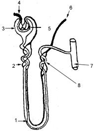diagram represents a mammalian kidney tubule and its blood supply. Parts