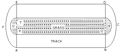 (ii) Given that the track is of constant width 7m,calculate the outer perimeter