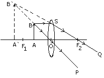 (ii) Draw another ray from B which passes through F2 after refraction by the lens.