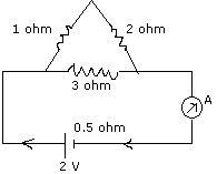 Q 6(a) Given below is the circuit diagram (Diagram 8) in which three resistances 1 ohm, 2 ohm, 3 ohm are connected to a cell of e.m.f. 2 V and internal resistance 0.5 ohm.