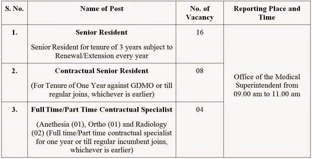 For recruitment of Senior Residents for 3 years, contractual Senior Residents for one year against GDMO & Full Time/Part Time Contractual Specialists:-