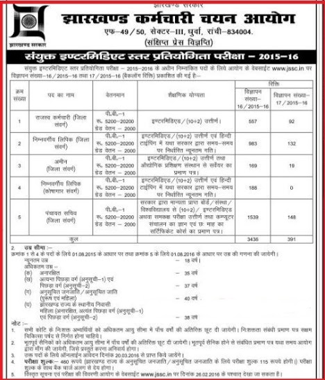 govt jobs">Govt jobs in Jharkhand. Interested and eligible candidates are advised to apply online application form at www.jssc.in on or before application closing date 26-03-2016. For more information regarding JSSC Recruitment 2016 details like age limit, selection procedure, how to apply details refer below information.